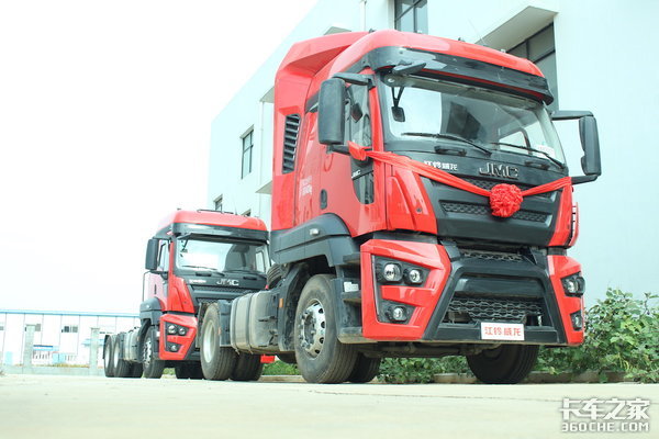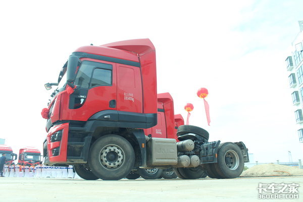 其中,4X2牵引车所占比例较高,据物流企业介绍,这款车将会主要用于商品车运输。这款车配备的是江铃JX6D09.365A5发动机,最大马力365,排量为9升。采用了福特的发动机技术,最大扭矩对应转速较高,因此在常用转速区间,发动机输出的马力都会比其它360马力发动机高,动力非常充沛。