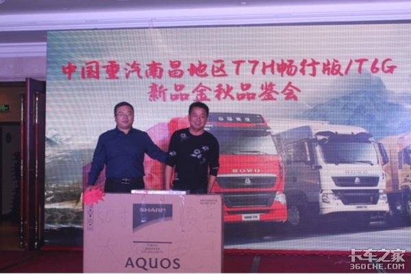 中国重汽销售部南昌分公司总经理刘飞现场抽中一等大奖并颁发奖品