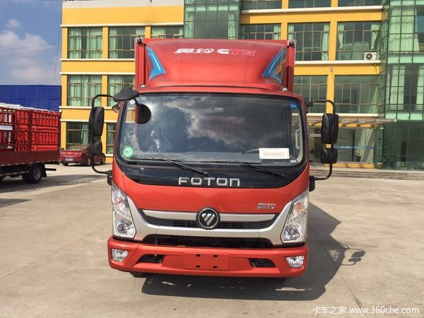 福田 奥铃CTS 143马力 4.2米单排厢式轻卡(万里扬5档)(BJ5048XXY-FA)装配前后鼓式驾驶室,动力方面,搭载福田康明斯ISF3.8s5141发动机,输出功率为143马力,符合国五/欧五排放,匹配6T120变速箱,档位数为5,采用整体琵琶式后桥,速比为3.727,另外,该车还配备基本速比、手动翻转、巡航、手动空调、中控锁+电动车窗、MP3、ABS、动力转向、针织普通座椅 7.50R16轮胎,对该款新车有购买意向的用户欢迎致电经销商。