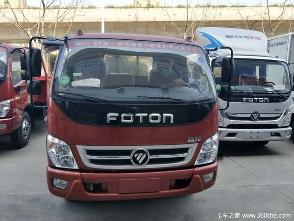 福田 奥铃CTX 科技版 130马力 4.23米单排栏板轻卡(国V)(BJ1049V9JEA-FE)装配前后鼓式驾驶室,动力方面,搭载福田康明斯ISF2.8s5129T发动机,输出功率为129马力,符合国五/京五排放,匹配万里扬WLY5G40变速箱,档位数为5,采用冲压焊接整体桥壳后桥,速比为5.375,另外,该车还配备手动翻转、巡航、手动空调、中控锁+电动车窗+遥控钥匙、MP3、ABS、动力转向、针织普通座椅,对该款新车有购买意向的用户欢迎致电经销商。