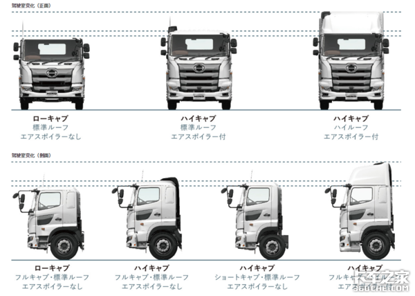 在驾驶室方面,Profia牵引车跟载货车一样,可提供超低顶版、平顶版与高顶版三种高度选择、针对用途则可提供四种驾驶室选择。