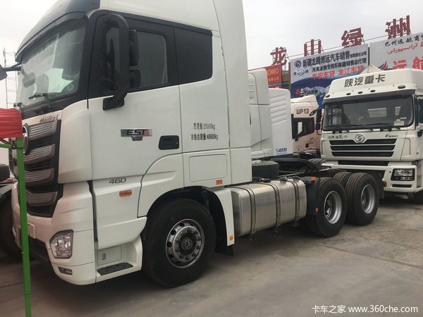福田 欧曼EST重卡 460马力 6X4牵引车(BJ4259SNFKB-AA)装配欧曼高顶驾驶室,动力方面,搭载福田康明斯ISGe5 460发动机,输出功率为460马力,符合国五/欧五排放,匹配法士特12档变速箱,档位数为12,采用469后桥,速比为3.7,另外,该车还配备电动门窗,中控锁,空调,液压翻转驾驶室,对该款新车有购买意向的用户欢迎致电经销商。