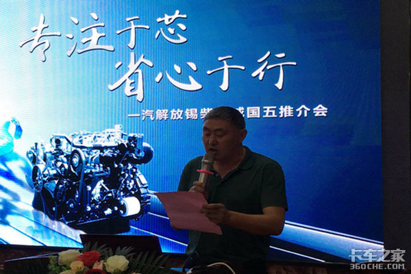 接下来,发动机厂家一汽解放锡柴湖北分公司品牌经理焦勇先生对一汽锡柴企业发展、产品和服务优势进行了系统讲解。一汽锡柴专注于柴油机核心技术的研发与探索,在七大系列产品中,300万公里无大修的奥威发动机荣获了目前发动机行业唯一的国家科技进步一等奖,康威系列490产品的无需烧尿素的DPF技术、4102产品的尿素防结晶技术引领行业。一汽锡柴的售后服务同样走在行业的前列,“智慧锡柴”APP的尊享服务,让万千用户畅行无忧。