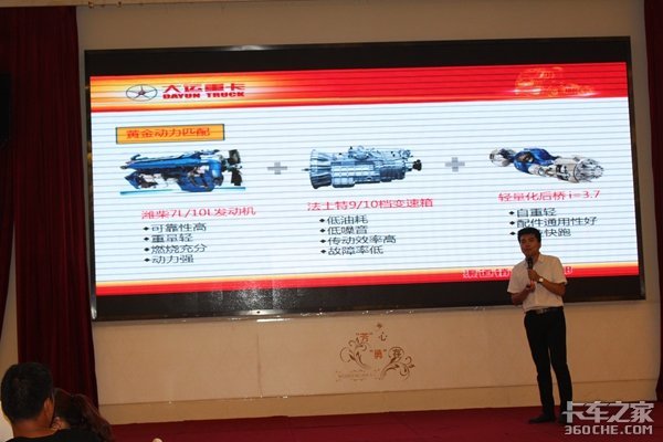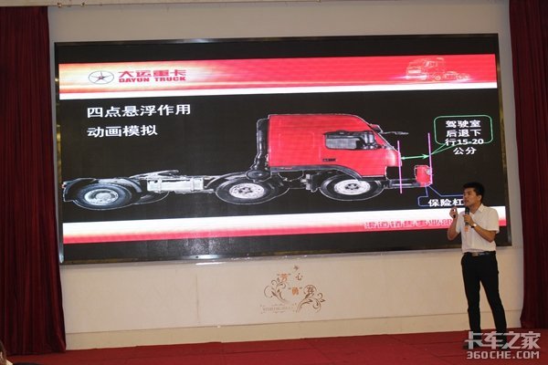 活动现场万经理着重介绍了大运重卡N8H 4×2港口牵引车:大运重卡的技术源自欧洲重卡技术领导者—沃尔沃。并执行与欧洲同步的IS09001质量管理与制造标准。四点悬浮驾驶室:采用鸟巢式刚性骨架结构,受力时能将力迅速分解到全身各处,变形小,保证生存空间,碰撞时可使驾驶室整体后退15-20公分;缓冲吸能作用,安全性高。材质采用上海宝钢高强度钢板,钢板厚度超过竞品20%。驾驶室焊接工艺采用瑞典ABB自动电焊机器人焊接;安全性达到国际标准。