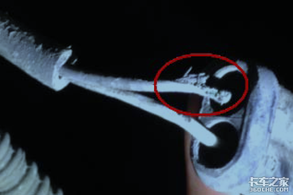 3) 检查排气温度传感器发现线束损坏,如图3.5所示,对线束进行修复,P027B消除;