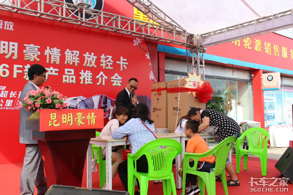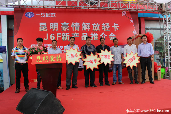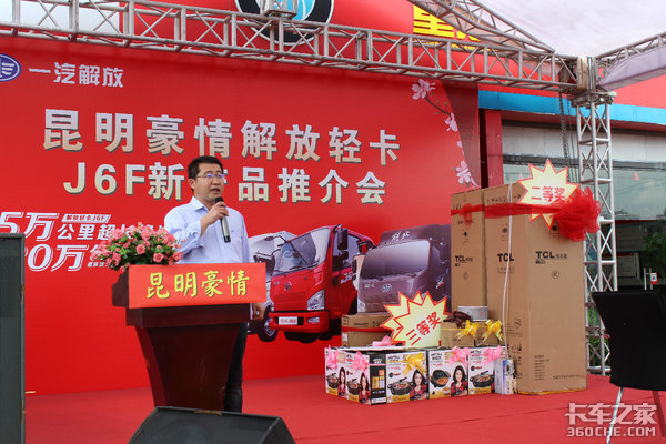 【卡车之家 原创】2018年9月22日,在国家大力倡导黄标车淘汰,大批不符合排放标准老车即将被淘汰之际,同时也是中秋佳节的前夕,昆明豪情汽车销售有限公司在昆明西山区毅人汽车市场隆重举办了“解放J6F轻卡新品推介会“活动。来自昆明及周边新老客户100多人共同参加本次活动,活动取得圆满成功,现场取得订车25台的好成绩!