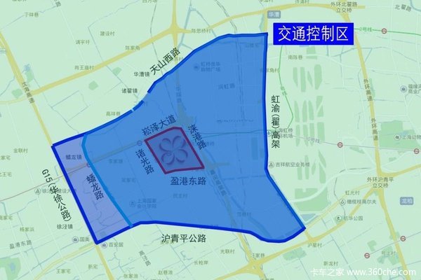 沪青平公路-华徐公路-天山西路(含北翟支路及规划道路线位)-七莘路合围区域(不含上述道路)设置为交通控制区: