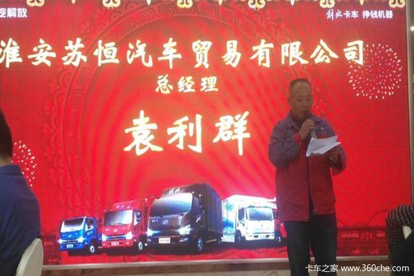 据淮安苏恒汽车贸易有限公司总经理袁利群介绍,解放卡车是中国制造历史最悠久的卡车,解放品牌是中国的第一个汽车品牌,解放历经五十余载的创业与发展,凝聚了一汽几代人的智慧与结晶,产品技术不断升级,汽车销量节节攀升。一汽解放秉承“用户第一”的理念,凭借自主创新走上了快速发展的道路。一汽解放积累了丰富的卡车设计、制造经验,奠定了解放品牌在卡车制造业的重要地位。全新配置的解放轻卡产品,是根据市场及用户需求,特别针对城市快速物流,从用户使用经济性角度,对整车动力和燃油经济性方面进行了全新优化后推出的新型产品。解放轻卡产品为城市快运、电商货物流转、超市配送等行业,提供动力强劲、承载力高、运输成本低、可靠性强的运输工具解决方案。一汽解放轻卡将努力打造成为“国内轻卡领域性价比之王”!