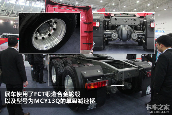 图示这台展车采用了FCT锻造合金轮毂以及MCY13Q的单级减速桥,另外少片簧加瀚瑞森橡胶悬架的配置大大减轻了车身的自重。