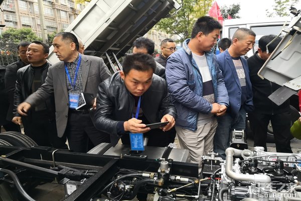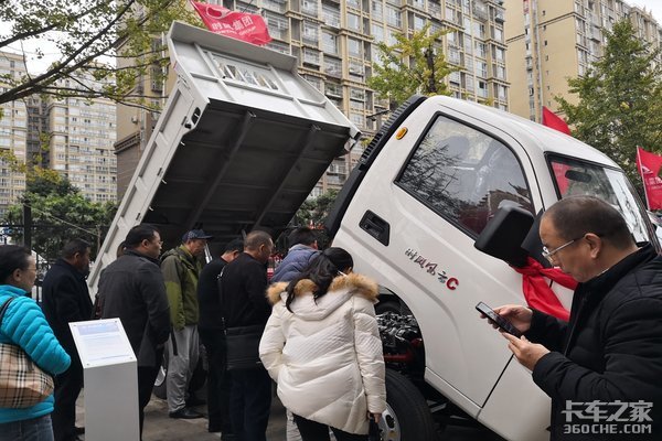 会前,与会嘉宾参观了此次专门带来的时风风云,新风菱,风驰,风顺系列新品轻卡汽车。特别对搭载一汽锡柴劲威4DB1的时风风云汽车自卸车型产生了浓厚的兴趣,大家把货箱升起,把驾驶室前翻,围在产品周围,不断的咨询产品配置,价格,性能特点,中央研究院副院长郝书辉,营销二处处长张云涛,四川区域经理曹庆柱等认真答复经销商的提问。