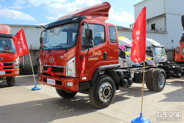 王者实力:一次成型的高强度车架纵梁,融合250mm车架腹高、8000KM抗弯、抗扭、抗震测试;动力总成采用六点悬置有效降低震动力;注油式高性能钢板弹簧,8T级锻造工字梁前桥,超宽轮距2300mm宽货箱8.25R20轮胎满足不同货运需求;