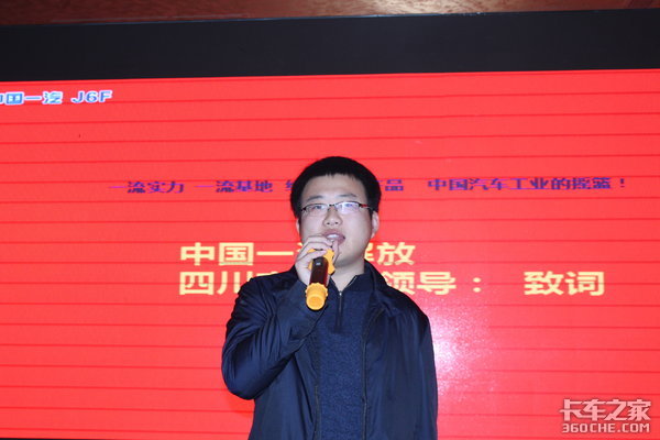 现场嘉宾到期之后,活动也随之开始。首先由一汽解放轻型车四川商代处王宏凯致欢迎辞,王宏凯表示一汽解放轻卡在四川的发展历程得到了很多客户朋友们的支持,是的市场份额逐年提升,今天借此推介会一方面是增加和各位新老朋友的感情,另一方面是让大家对一汽解放轻型车的了解,同时也是为了对大家表示感谢,活动过程中着重介绍了一汽解放锡柴4DB1这一全新产品。