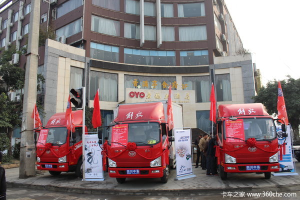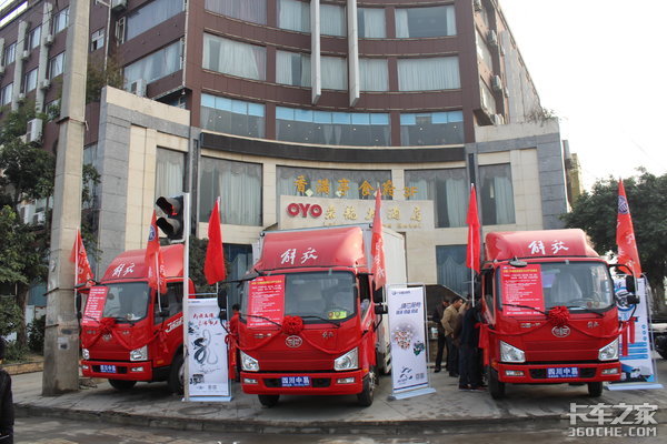 【卡车之家 原创】2018年11月30日,四川中易同盛汽车销售有限公司在成都龙泉驿区举办了一场一汽解放轻卡J6F的产品推介会。参加本次活动的有:一汽解放轻型车四川商代处王宏凯、一汽解放大连柴油机有限公司刘海泉、绵阳中川总经理赵太军,一汽解放汽车有限公司无锡柴油机厂何伟以及现场300余位新老客户共同参加了本次活动。