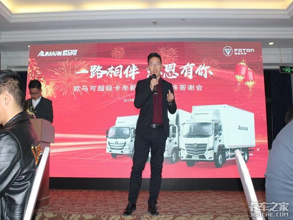随后,杭州星原汽车有限公司欧曼品牌业务总经理刘惠中、欧马可品牌业务总经理张德贵向在场的嘉宾朋友们介绍了产品以及现场订车的政策。欧曼、欧马可优异的性能,再加上优惠的订车政策,已经让不少现场嘉宾为之心动了,纷纷考虑要不要订车,为春节后的物流运输打下基础。