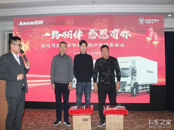 【卡车之家 原创】2019年1月17日,由杭州星原汽车有限公司主办的福田欧曼、欧马可年终客户答谢会在杭州石塘瑞莱克斯大酒店隆重举行,会议现场安排了丰富的精美签到礼品、精彩的舞蹈表演、抽奖活动,以及优惠的订车活动!