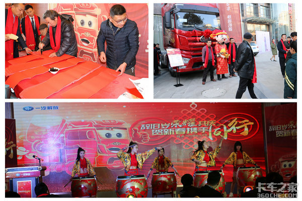 活动开始前,枣阳华越专用汽车有限公司邀请到了枣阳知名的书法家为来参加活动的嘉宾写对联、公司员工扮演的财神给大家派发红包,活动还特别设置了赏车环节,六台崭新的解放卡车装点了活动的氛围,大家纷纷在展车前与财神合影,沾沾喜气,望来年一切顺利、生意兴隆!