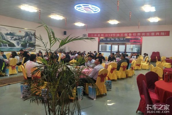紧张刺激的羽毛球比赛结束后,嘉宾们在主会场就座。经销商准备了丰富的酒宴招待嘉宾们,现场的气氛越来越热烈了。