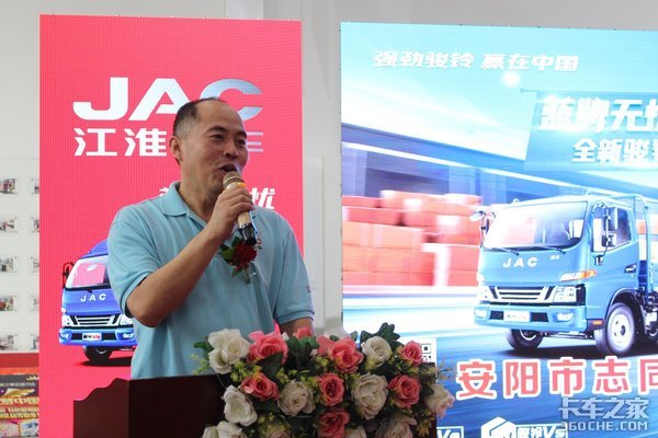 参加本次活动的嘉宾有:安徽江淮轻型商用车骏铃营销公司裴增佳先生,安徽江淮汽车骏铃营销公司河南大区总监吴越先生,安徽江淮汽车骏铃营销公司河南大区经理张文先生,安阳市志同汽车贸易有限公司董事长刘明勋先生,安阳市各个快递公司负责人及200多名客户朋友参加。