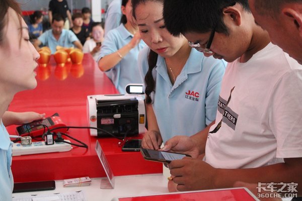 江淮骏铃在会上推出了诸多购车优惠政策,活动开始不久就有不少用户开始订车并直接开走,现场订车热情高涨。