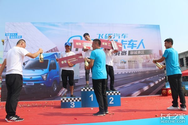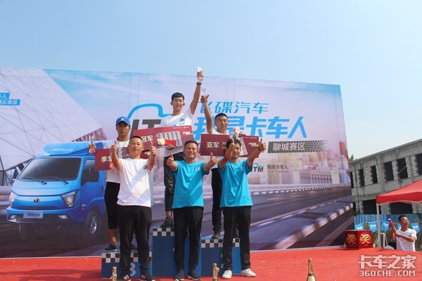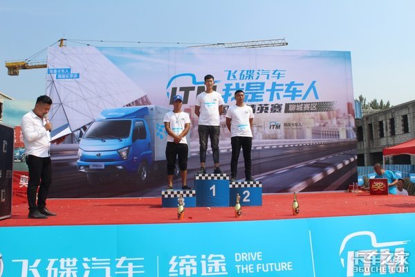 主持人在比赛环节中,不时穿插购车优惠政策以及比赛过程中要注意的事项,活动现场还有精彩的舞蹈和卡友献唱环节,在场的卡车人师傅们凭借着精湛的驾驶技术,接连刷新记录,赢得了一次又一次的欢呼,最终张纯岭以1分31秒41的优异成绩夺得冠军,冷法露以1分32秒35的成绩夺得亚军,季军由杨明法以1分42秒59的成绩夺得,他们表示对以后的大区赛充满信心,比赛过程中还进行了现场随机抽取20个参与奖,最后由飞碟汽车鲁西大区经理秦绪华,聊城市聚升伟业汽车销售有限公司孙秀强先生和飞碟汽车专用车事业部山东大区张先德先生分别对获得冠亚季军的选手举行了颁奖仪式、并同台合影,冠亚季军分别获得5000元,3000元和2000元现金红包大奖,外加1000元的保养卡代金券,随后主持人大赛圆满结束并邀请所有人员参加答谢午宴。