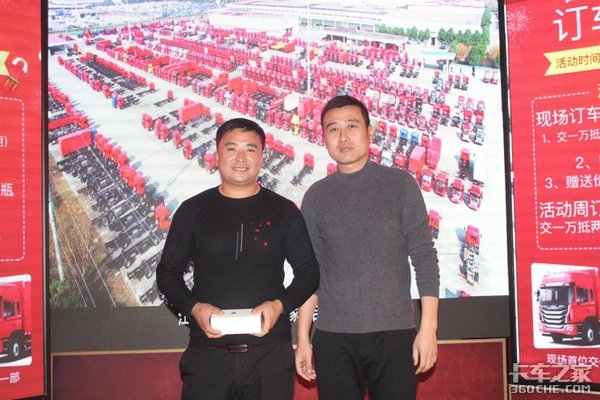 山西前进运力汽车销售有限公司总经理王志广先生给第一台订车用户颁发订车豪礼华为手机一部。