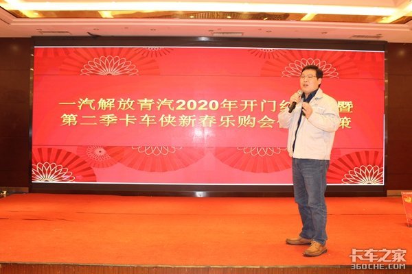 一汽解放青岛汽车有限公司江苏商代处刘凤国先生对青岛解放品牌及产品进行介绍并宣布当日优惠活动政策