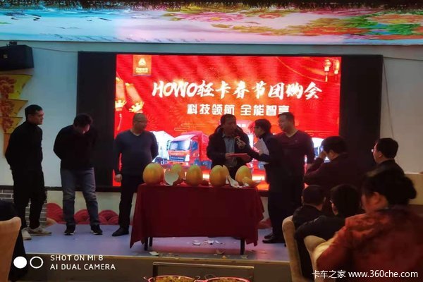 【卡车之家 原创】2020年1月11日在美丽的泉城济南,山东瀚茂贸易有限公司隆重举办“中国重汽HOWO轻卡春节团购会”,参加此次活动的领导和嘉宾有:山东瀚茂贸易有限公司总经理孟晨先生,中国重汽HOWO轻卡鲁北办事处副经理亢艳斌先生、中国重汽HOWO轻卡鲁北办事处济南区域经理杜续刚先生、济南一米城配总经理殷风光先生以及山东瀚茂公司的合作伙伴物流公司和二级老板,还有一直以来支持HOWO轻卡的新老客户共计100余人大家齐聚一堂,取得了订车57台的骄人业绩。