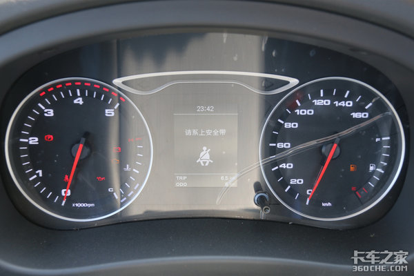 仪表盘采用新款指针式与液晶显示屏组合设计,多在轿车上看到这样的设计,简约精致。该仪表盘集成多种功能,例如常见行车信息、保养信息之外,还带有超速报警、故障信息等,功能很强大。方便驾驶员第一时间读取和了解车辆信息。