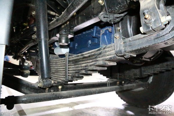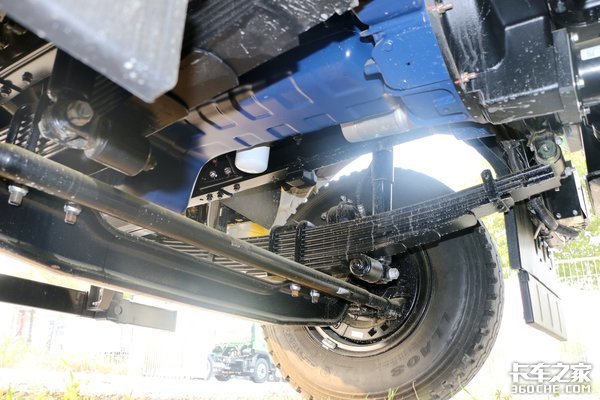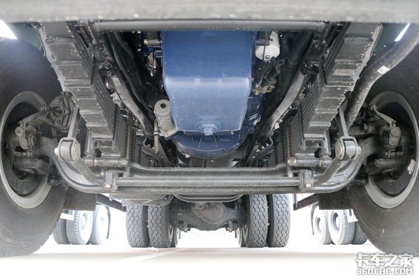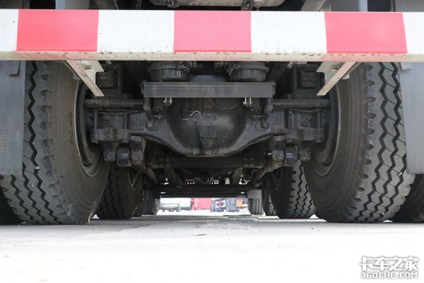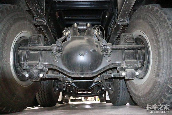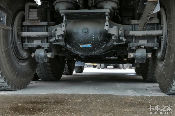 前桥允许载荷为6500/6500kg,后桥为300铸钢轮减桥,允许载荷达到18000kg,速比为5.921。配备有12条规格为12.00R20的朝阳轮胎,底盘为前9/9后10的钢板弹簧悬架结构,保障了车辆的承载能力。