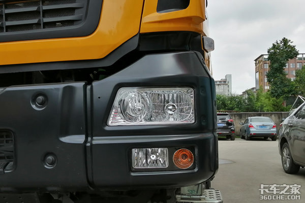 不规则四边形的多功能灯组单看并不出彩,但却和整车设计风格很搭配。此外渣土车夜间行车的情况很普遍,而近光灯带有透镜,光线不会发散,对地面的照明效果好,提高夜间行车安全。