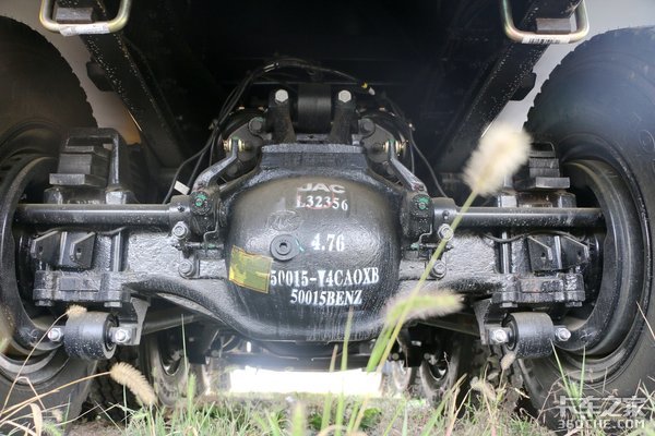 配备有12条规格为12.00R20的德安通轮胎,底盘为前10/10后12的钢板弹簧悬架结构,车架高度为850×300(8+5)mm,保障了车辆的承载能力。前桥允许载荷为6500/6500kg,后桥为16T MAN双级桥,允许载荷达到18000kg,速比为5.26。