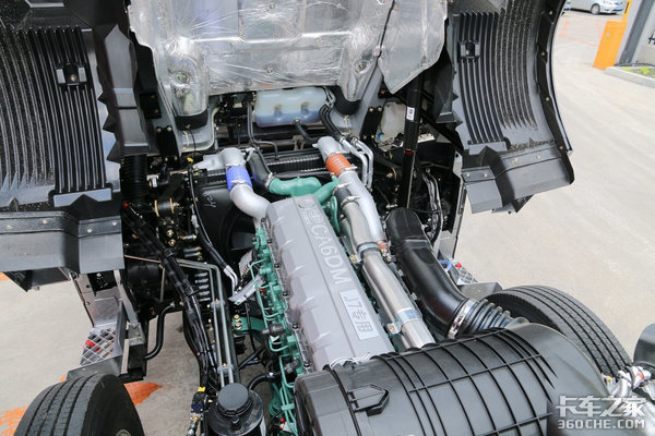 此汕德卡C7H车型搭载重汽最新的MC13 600马力发动机,满足国六排放标准,发动机最大扭矩为2700牛米,搭配中国重汽12挡AMT超速挡变速箱+速比为3.7的MCY13BES桥。