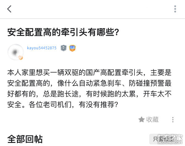 目前装配有EBS、自动刹车、ACC自适应巡航等安全配置的基本都是以国产高端牵引车居多,并且实际在售的车型不多,此时我们的可选择性范围就已经很小了。