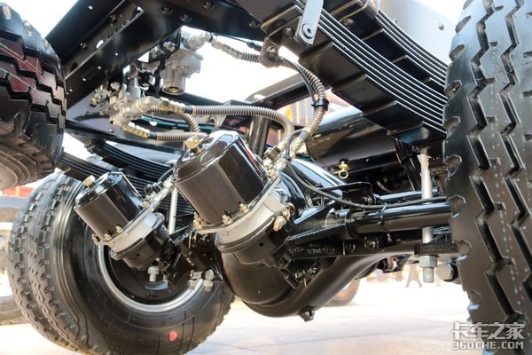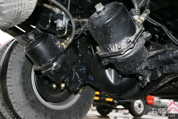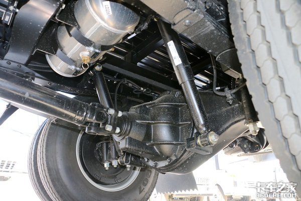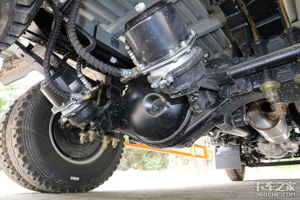 匹配法士特5J38T变速箱,挡位数为5;底盘为前3后3+2钢板弹簧结构,搭载5T级后桥,允许载荷达到2885kg,速比4.875,可搭载4180x2300/2150x500/400mm栏板式货箱。