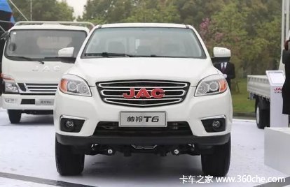 【卡车之家 行情】据本站最新消息,2020年09月12日江淮帅铃T6 2020款 精英型 2.0T柴油 150马力 两驱 短轴双排皮卡(国六)新车抵达赣州市众辉汽车销售有限责任公司,官方建议零售价9.98万元,近期有购买需求消费者可到店详询。