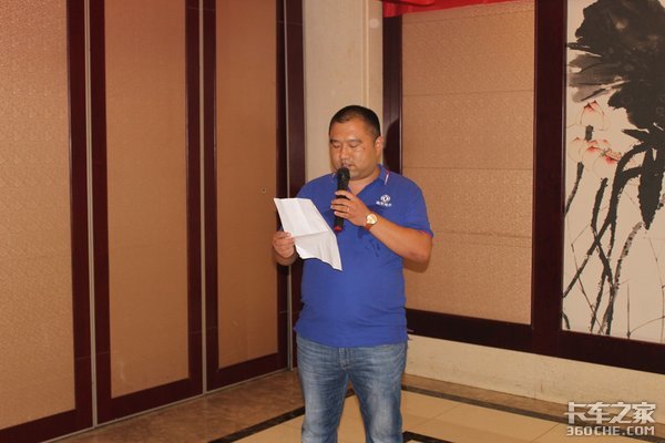 东风商用车新疆有限公司苏沪大区经理邹功勤先生发言致辞。邹经理表示,非常感谢大家到场参加今天的团购会,东风新疆成立于2018年,在短短的两年时间里,东风新疆得到了很多客户朋友们的支持,产品销量快速上升,市场份额逐步提高。今天借此机会,邀请大家欢聚一堂,希望大家今晚吃好喝好,度过愉快的一天。