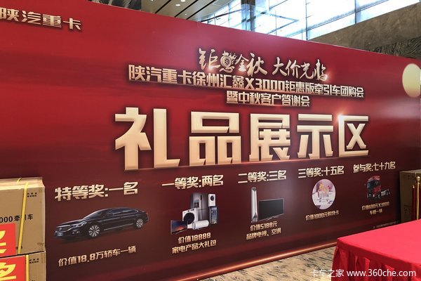 【卡车之家 原创】2020年9月14日,“钜惠金秋 大价光临 徐州汇鑫陕汽重卡X3000钜惠版团购会暨中秋答谢会”在徐州温德姆国际大酒店隆重举办,徐州汇鑫钜惠版X3000牵引车购车车主以及新用户朋友们共计200余人欢聚一堂,共同见证了“购陕汽重卡 砸金蛋赢好礼”的盛大活动。