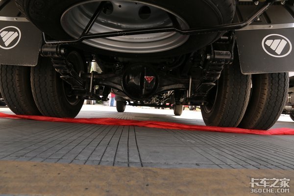 轮胎的规格型号是175R14,悬挂采用前5后5的板簧设计,并且使用121级后桥,满足承载力的需求。