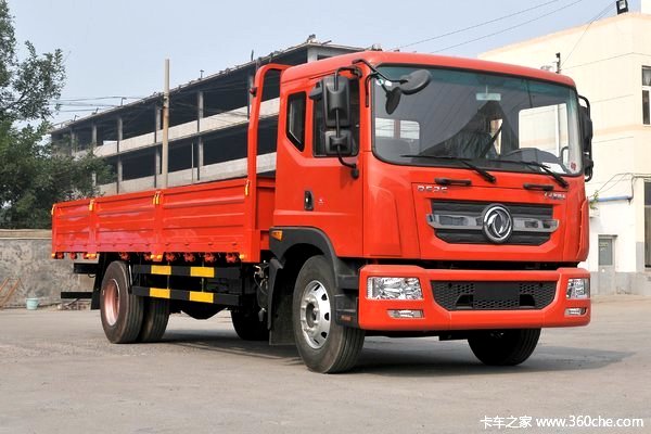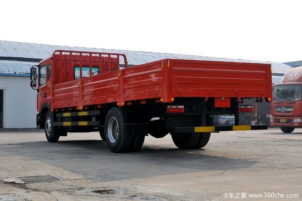 东风多利卡D9中卡 170马力 4X2 6.8米栏板载货车,装配平顶驾驶室。动力上,搭载3.8升玉柴YC4S170-50发动机,最大输出170马力,峰值扭矩600马力,符合国五排放,匹配8挡变速器,装配8T级后桥,箱长级别6.8米,额定载重9.945吨。