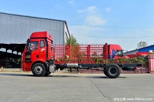 一汽解放 J6L中卡 240马力 4X2 6.75米栏板载货车,装配2019款J6L半浮高顶排半驾驶室。动力方面,搭载5.7升的大柴CA6DH1-24E5发动机,最大输出240马力,峰值扭矩900牛米,符合国五排放,匹配8挡一汽解放CA8TAX090M变速箱,后桥速比4.444,额定载重9.9吨。