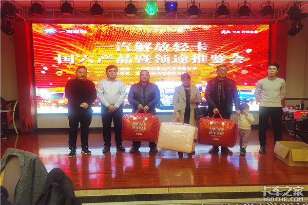 【卡车之家 原创】2020年11月28日,“一汽解放高端轻卡领途暨国六产品推介会”在永州市潇湘滨湖酒店隆重举办。在主办方永州奥鑫汽贸有限公司的精心策划组织下,有近100位新老用户朋友不畏严寒很早便来到活动展车现场,细心了解并亲自体验了全新一代高端轻卡领途产品。