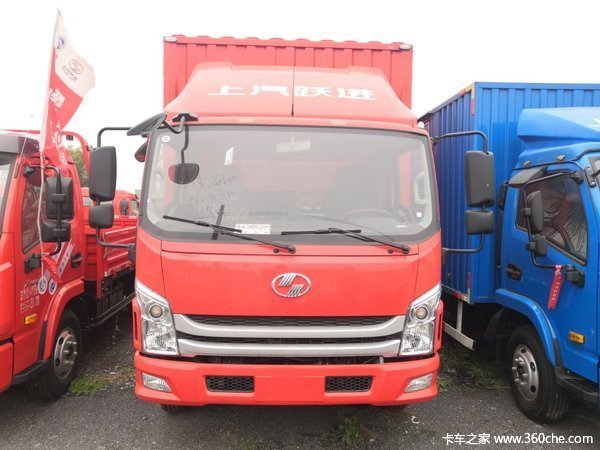 跃进 超运C500-33 156马力 4.17米单排厢式轻卡装配导流罩驾驶室,动力方面,搭载云内动力D30TCIE4发动机,输出功率为156马力,符合国五排放,匹配上汽齿SC50M6D变速箱,档位数为6,采用5T后桥,速比为3.909,对该款新车有购买意向的用户欢迎致电经销商。