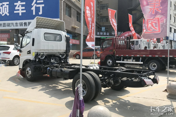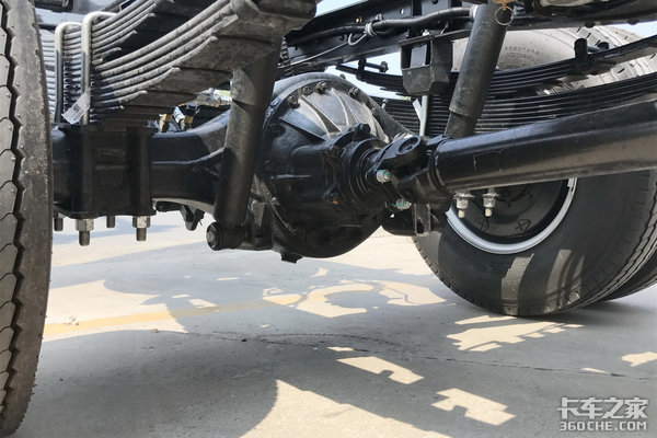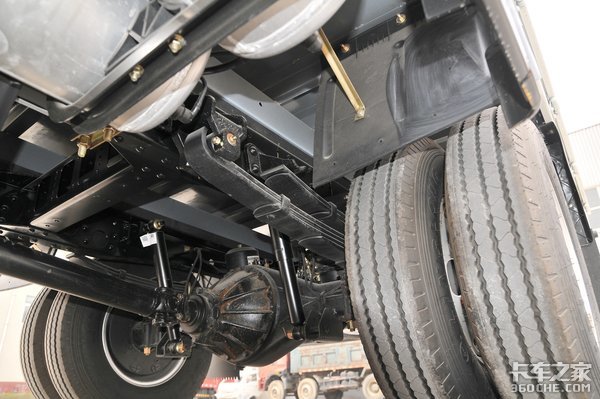 匹配法士特5J30T-B变速箱,档位数为5;底盘为前3后3+2钢板弹簧结构;前桥允许载荷达到1610kg,搭载4T级后桥,允许载荷达到2885kg,速比为5.125,可搭载4180x2050x400mm栏板式货箱。