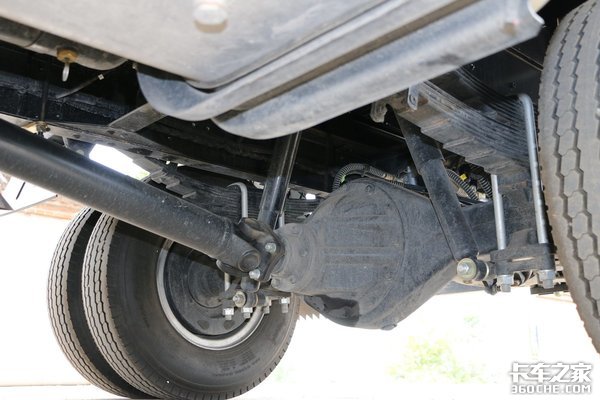 匹配万里扬WLY5T32变速箱,挡位数为5;底盘为前7后9+5钢板弹簧结构,前桥允许载荷达到1860kg,后桥允许载荷达到2635kg,速比为4.875,可搭载4200x2100x2100mm厢式货箱,容积达18.52方。