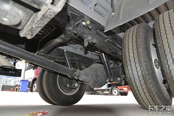 匹配万里扬WLY6TS40变速箱,挡位数为6;底盘为前11后9+7钢板弹簧结构,后桥允许载荷达到2600kg,速比4.875,可搭载4150x2300mm仓栅式货箱。
