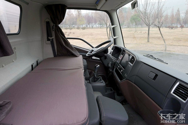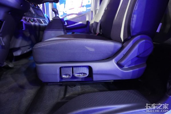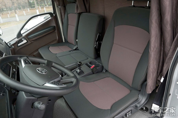 座椅方面,解放领途的座椅配备了支持手动调节腰托、腿托、座椅加热等功能,在轻卡车型上,这种配置比较少见,可谓丰富。