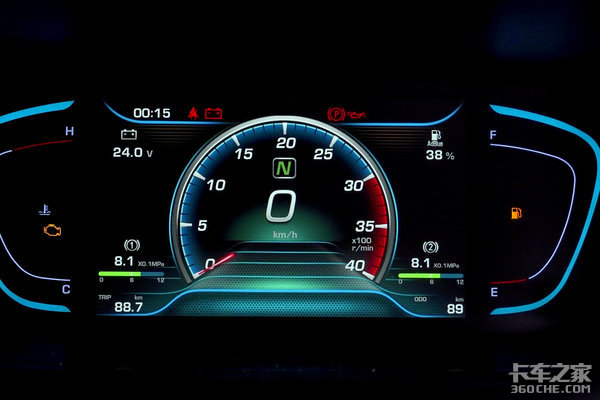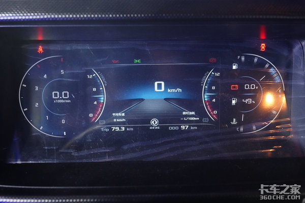 除中控大屏外,解放领途的仪表盘也采用了全液晶仪表设计。这种设计的仪表最大的好处就是信息显示非常全面,常用的行车信息在仪表上都能清晰读出。此外,这块液晶仪表的分辨率较高,观感不错。