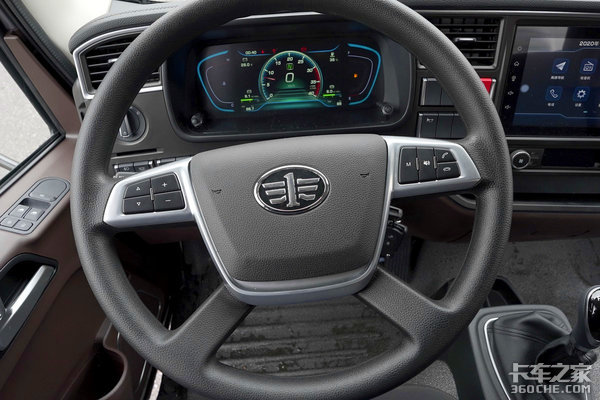 仪表盘前面是解放领途的四幅式多功能方向盘,在方向盘的两侧集成了蓝牙电话、多媒体等等功能的控制按键。在日常行驶过程中,常用的操作都能够在方向盘上进行,这能在城市多变的路况中有效提升行驶的安全性。
