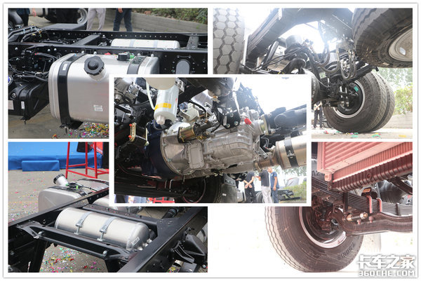 在轻量化方面,飞碟W5采用了120升的塑料油箱,采用铝合金轮辋、铝壳变速器、铝合金储气罐等等轻量化设计。