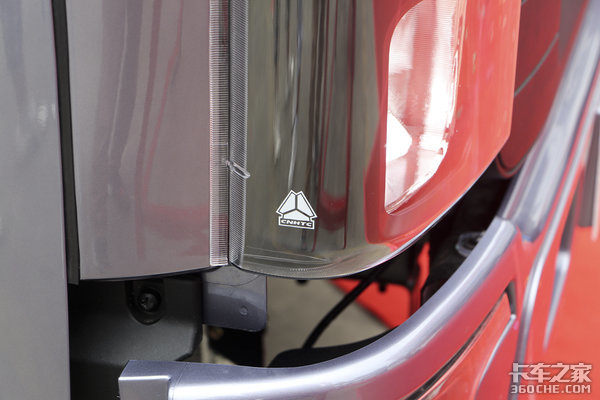 进气格栅两侧的大灯采用了黑边处理,看起来比较时尚。如果要仔细观察,我们不难发现大灯在细节之处也增加了重汽的LOGO,可以看出厂商在车辆的设计上非常细心,而这种细节也让人能够感到更强的高级感。